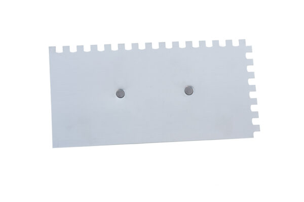 Dentes padronizados em dois lados (padrão 12x24), ideais para espalhar argamassa de forma uniforme