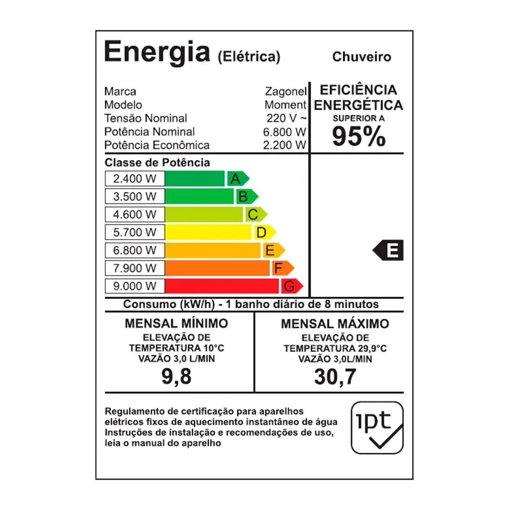 DUCHA MOMENT 4 TEMPERATURA 6800W 220V BRANCO CX. ZAGONEL
