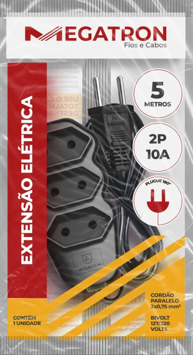 EXTENSAO 2X0,75MM 5MT PRETA MEGATRON