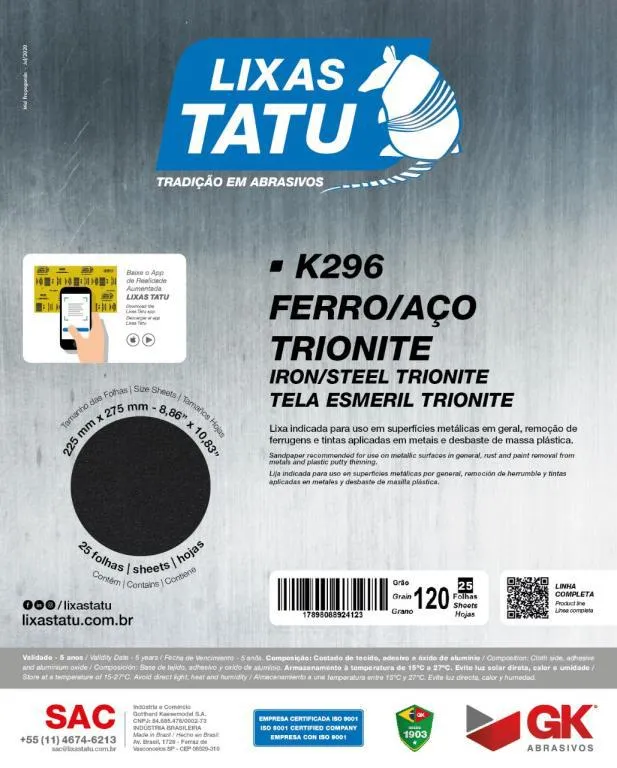 LIXA FERRO/ACO TRIONITE TATU GRAO 060