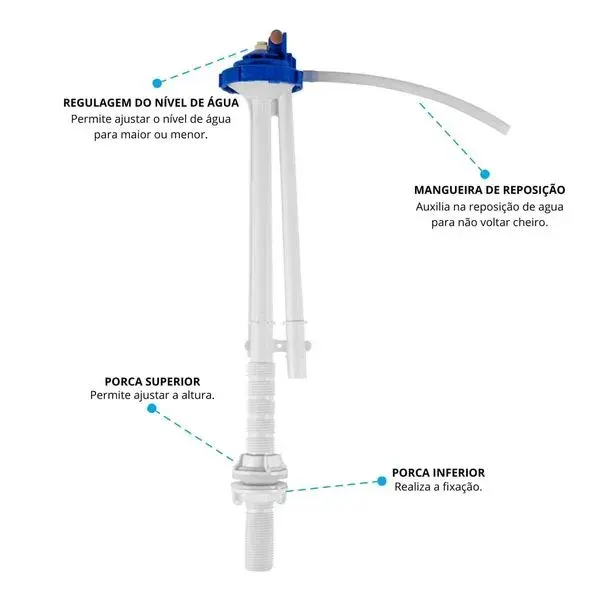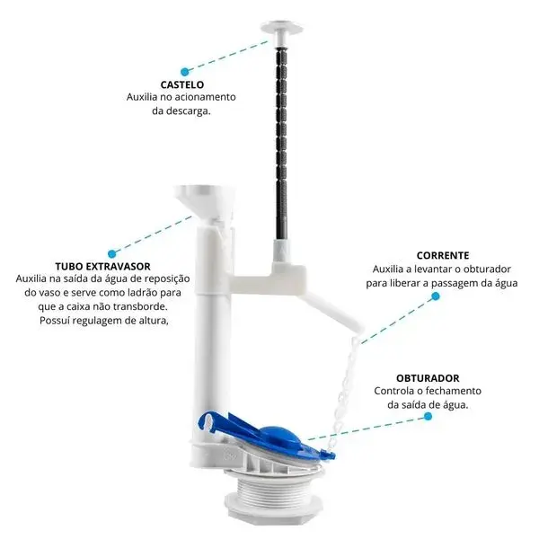 Conjunto Completo Universal de mecanismos simples para caixa acoplada com acionamento cromado superior da Astra.