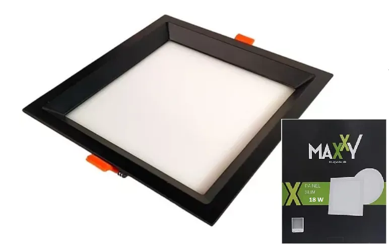 PAINEL LED EMBUTIR MAXXY-5359 PRETO QUADRADO 18W 6500K