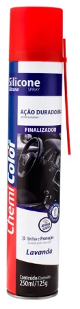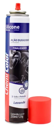 Para proteger, renovar e dar brilho: Silicone Lavanda Chemicolor. Como finalizador, o silicone oferece brilho a diferentes superfícies, além de funcionar como excelente lubrificante. Tudo isso com a fragrância suave de lavanda. Aplique em plásticos, borracha e vinil, entre outros Disponível em 250 ml