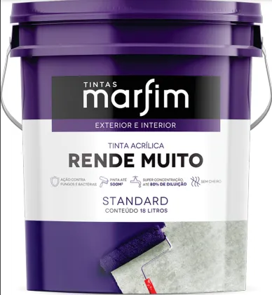 Descrição: Tinta Acrílica Rende Muito é uma tinta de alta concentração que permite uma diluição superior aos produtos convencionais. Produto de fácil aplicação, mínimo respingamento, ótima resistência e durabilidade às intempéries, secagem rápida e sem cheiro