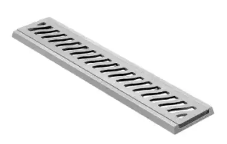 Conjunto grelha linear (permite continuidade)acab.escovado. uso exclusivo p/passagem de pedestres.p/ambientes int.e ex. drenagem de agua de piso e pluvial.reistencia ate 200kg