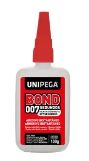Bond 007 segundos e um adesivo instantaneo a base de cianoac rilato multi colagens,pois cola com perfeicao e instantaneam ente a maioria dos materiais porosos e nao porosos