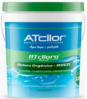 Dicloro para tratamento de agua de piscina, possui 3 funcoes em 1 produto: desinfeta,clarifica e decanta atingindo o res ultado desejado de forma pratica. teor ativo 36,47 por cento