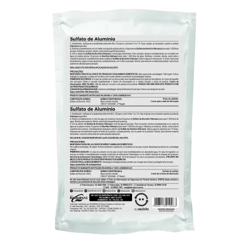 ৹ Dissolva em um balde com água, 40g de Sulfato de Alumínio para cada 1.000 litros de água. Distribua, uniformemente, a solução sobre a água da piscina;