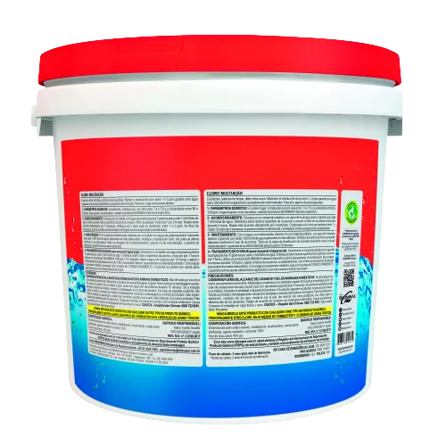 ৹ Jamais misture este produto com qualquer outro tipo de cloro, em grânulos ou tabletes, sob risco de combustão. Hipoclorito de Cálcio ou Sódio ou quaisquer produtos químicos nunca devem ser misturados e armazenados com Dicloro e Tricloro Isocianúrico.