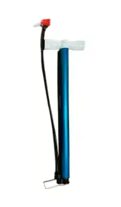 Bomba de ar manual cor azul turquesa multiponteira material plastico e borracha apoio para pe