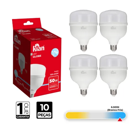 A lâmpada é bivolt? Sim, a Lâmpada Led 50W 6500K Kian é bivolt (100-240V), adaptando-se automaticamente à voltagem da sua instalação elétrica.