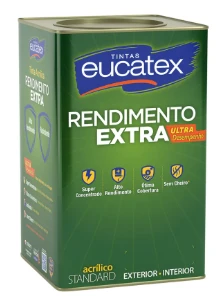 Posso usar esta tinta em áreas externas? Sim, a Tinta Acrílica Eucatex Rendimento Extra é ideal para uso tanto em áreas internas quanto externas, oferecendo proteção contra as condições climáticas.