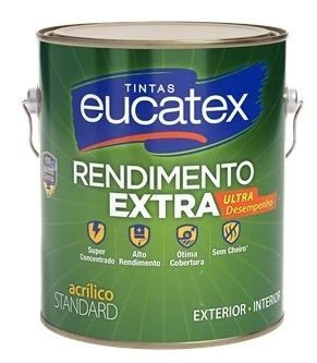 Posso aplicar a tinta em áreas externas? Sim, a Tinta Acrílica Eucatex Rendimento Extra é ideal para uso tanto em áreas internas quanto externas.