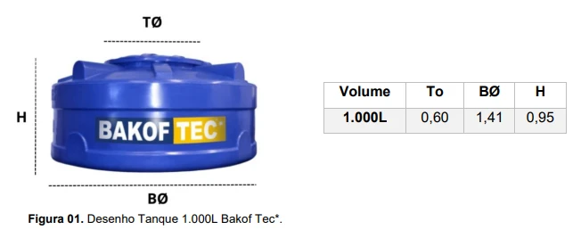Os tanques Bakof Tec estão disponíveis em diversos volumes para atender a diferentes necessidades de armazenamento: 310L, 400L, 500L, 750L, 1.000L, 1.250L, 1.950L, 2.200L e 2.500L. Cada modelo é equipado com um adaptador flange de 50 mm na saída, facilitando a conexão e instalação do tanque de forma prática e rápida.